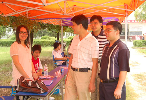 2009年8月24日上午9点,党委副书记、院长柏连阳教授顶着烈日亲临职教部,亲切看望迎新工作人员,职教部现场迎新工作人员倍受鼓舞。大家决心不畏高温,努力为全国各地来的新生和家长提供优质服务。