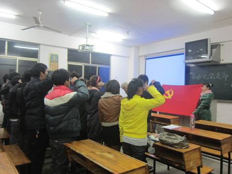 ,通控系自动化专业学生党支部在5栋515教室开展了“重温入党誓词”活动。该系党总支书记谭甲凡出席并讲话。