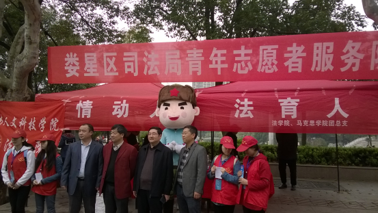 3月5日上午,团总支全体成员在娄星广场与市团委志愿者一起开展普法宣传,进行法律援助,倡导法治生活,法学院、市区司法局领导以及学院指导老师全程参与了活动。