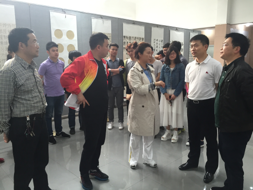 4月28日下午,学校副校长蒋建初、石潇纯先后莅临逸夫楼美术楼二楼展览厅,在美术与设计学院党总支书记李小林、书法学教研室主任易俊等老师和学生的陪同下,观看了“‘承启杯’44118太阳成城集团美术与设计学院书法学专业首届师生书法作品联展”,并到“书法学专业国展冲刺班”教室看望了正在刻苦创作的20名冲剌学生。