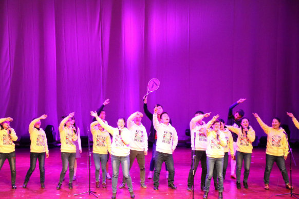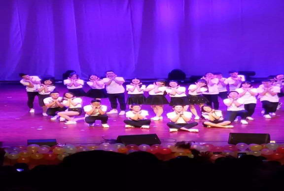 刘红燃带领老师们、学生会主席和团副的歌舞表演