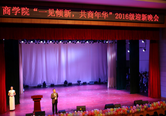 11月13日晚,由商学院学生会和团总支共同承办的商学院“一见倾新,共商年华”2016级迎新晚会于逸夫楼音乐厅隆重开演。出席晚会的有副校长刘铁峰、学工处处长余为、副处长李映泉、校团委副书记刘晔、商学院院长朱强、党总支书记刘辛田、副书记刘红燃、副院长王志和、全体辅导员老师、2016级新生班主任、校院学生干部及2016级商学院全体新生。