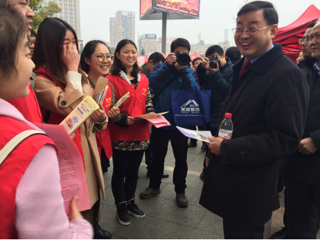 3月15日上午,中国人民银行娄底市中心支行在娄星广场开展以“网络诚信,消费无忧”为主题的大型宣传咨询活动,太阳成官网派出16名志愿者前往协助工作。广场上悬挂出“3.15国际消费者权益日”横幅,展出法律知识图板,设立金融消费安全问题咨询点。志愿者向来往群众发放《消费者权益保护知识普及》、《涉假币纠纷冠字号码知识查询》等消费知识宣传单,重点对安全网络消费等知识进行了宣传。志愿者们积极热情地向前来咨询的消费者们讲解依法维护自身合法权益的手段,引导消费者们用正确的途径诉求自己的利益,维护自身的合法权益。陈蕾副市长到场对志愿者们进行慰问,与同学们热切讨论关于网络消费安全问题的知识,并对太阳成官网提出了高度表扬。