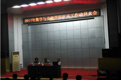 5月11日晚,数学与金融学院于匠成楼报告厅召开2017年征兵工作动员大会。学校武保处雷振东副部长、周樑老师、刘惠娟老师、数学与金融学院党总支书记高平、副书记周兰、全体辅导员以及全院肄业班全体男生出席了本次会议,会议由周兰主持。