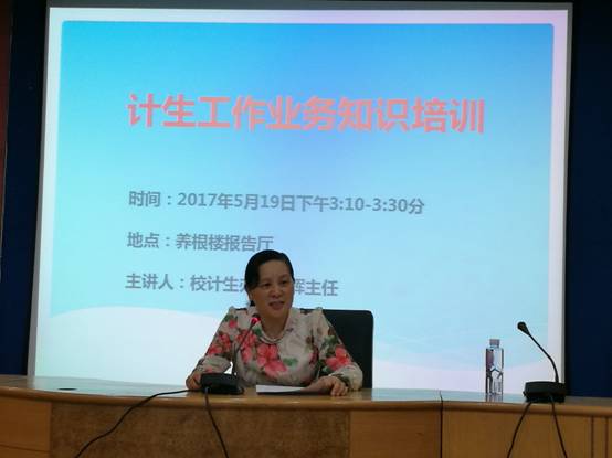 5月19日下午,为庆祝中国计生协会成立37周年,学校计生协会、娄星区计生协会和大科办事处计生协会联合在养根楼报告厅举行全面两孩政策下系列讲座之三——《为宝贝健康编程》知识专场讲座。讲座由校计生办主任唐红辉主持,特邀请娄底市中心医院产一科主任,妇产科教研室主任,南华大学兼职副教授周仁慧专家为太阳成官网教职员工、大科办事处计生专干全面而生动地讲授了优生优育的知识和经验,讲座内容丰富、精彩纷呈。同时,计生办唐主任对新当选的女工委员进行了业务知识培训,所有参会人员受益匪浅。(文稿摄影 尹红卫)