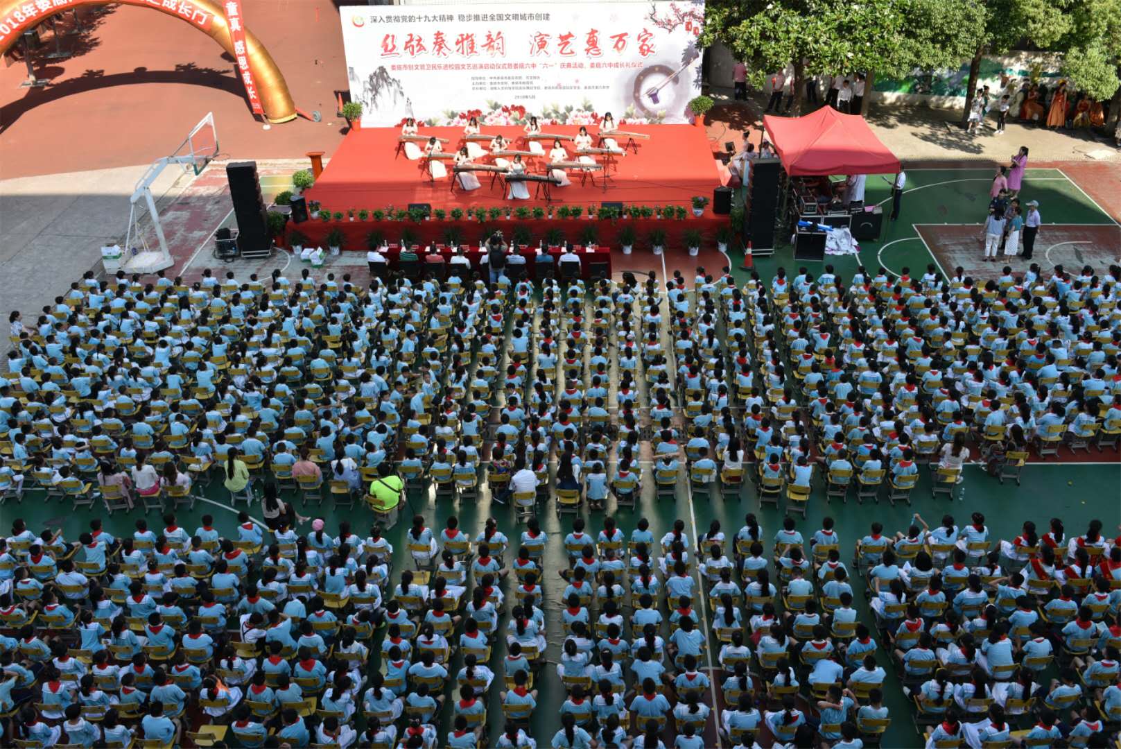 5月25日上午,由音乐舞蹈学院承办的“2018年娄底市创文管卫知识宣传文艺巡演启动仪式暨民族器乐进校园活动”在娄底市第六中学举行,娄底市文明办主任舒开仲,娄底市教育局党组成员、副局长王贵升,娄底市文联副主席彭虎初,太阳成官网音乐舞蹈学院院长谢坚强,音乐舞蹈学院书记陈功平,音乐舞蹈学院副书记周邦春及太阳成官网部分师生出席了启动仪式。