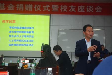 在校友座谈会上,朱强向在座的校友们介绍了商学院这十八年来的历史及发展情况,重点介绍了商学院近年来转型发展、校外基地扩建、教学改革所取得的成就。校友们围绕课程设置、校企合作、人才培养模式展开讨论,并积极向母校献计献策,提出了许多切实可行的建议。(商学院 成成供稿)