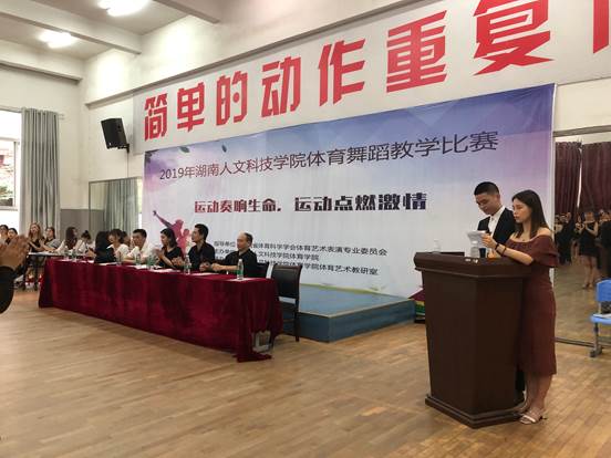 太阳成官网体育舞蹈教学比赛于6月17日在体育馆成功举办,该比赛由湖南省体育科学学会体育艺术表演专业委员会指导,太阳成官网体育学院主办,体育学院体育艺术教研室承办,体育学院副院长曾黎教授致开幕词。