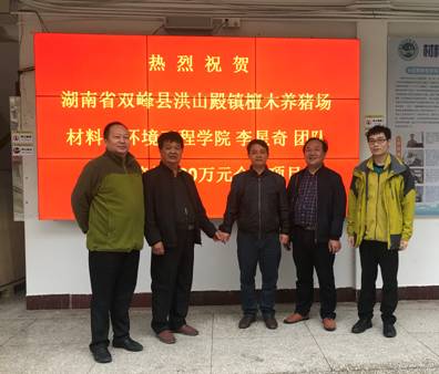 材料与环境工程学院李星奇、杨道武、彭伟才团队经过不懈的努力,成功与湖南省双峰县洪山殿镇檀木养猪场签约200万元横向合作项目-农村中小型养猪场养殖粪污处理技术开发与应用,该项目的成功签约标志着材料与环境工程学院为区域经济服务取得重大突破,也是该院“不忘初心、牢记使命”主题教育重要阶段性成果,为提高应用型人才培养质量奠定了良好的基础。