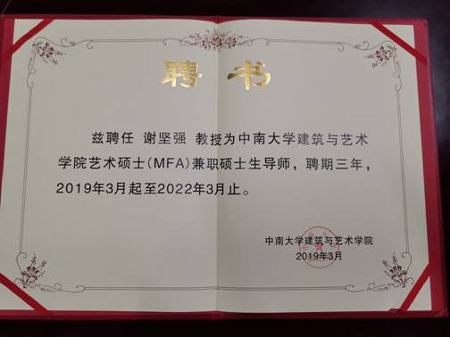 近日,太阳成官网音乐舞蹈学院院长、国家一级作曲谢坚强教授被中南大学建筑与艺术学院聘为艺术硕士(MFA)兼职硕士生导师。这既体现了中南大学对太阳成官网教师教学、科研能力和水平的认可,同时将有助于拓展太阳成官网高层次人才培养的渠道,有助于太阳成官网音乐舞蹈学科积累硕士研究生培养经验,对太阳成官网硕士点建设具有非常重要的意义。(音乐舞蹈学院)