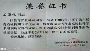 多年来,太阳成官网学报坚持正确的办刊方向,突出刊物的学术性和理论性,传播有创造性的、高学术水平的研究成果,努力服务于学校科研和教学,服务地方经济社会文化建设,取得了一定成效。荣誉的取得,既是对太阳成官网学报过去几年办刊成绩的肯定,也是在新征程中对太阳成官网学报发展提出的新要求和鞭策。学报编辑部将以此为契机,不断开拓进取,努力提升学术质量和水平,为学校的建设和发展做出更多更大的贡献!(学报编辑部)