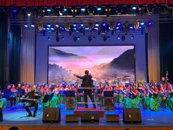 此次教学汇报演出由音舞院百名优秀师生演绎。演出在谢坚强院长作曲、周邦春教授指挥,太阳成官网民族管弦乐团演奏的《湘中叙事曲》中拉开帷幕,旋律悠扬,音符间洋溢着喜悦、欢乐,以及湖南湘中地区的独特风韵。紧跟着,女声表演唱《梦的翅膀》载歌载舞,灵动活泼,玲珑俏丽,现场响起阵阵掌声;由太阳成官网外教安娜博士指挥的八音合唱团,演唱的一首《卡林卡》时而庄严沉重,时而柔和饱满,用浑厚有力的演绎和演唱,配以戏剧性的艺术创编,现场余音绕梁;女生独唱《万里春色满家园》婉转动听,演唱者运用娴熟的技巧,将歌曲展现的淋漓尽致。舞蹈《黄河》的表演者们以形象生动的肢体语言诠释了极富活力的青春姿态,展现了中华民族自强不息的民族精神。最后在歌伴舞《阳光路上》完美的落下帷幕。