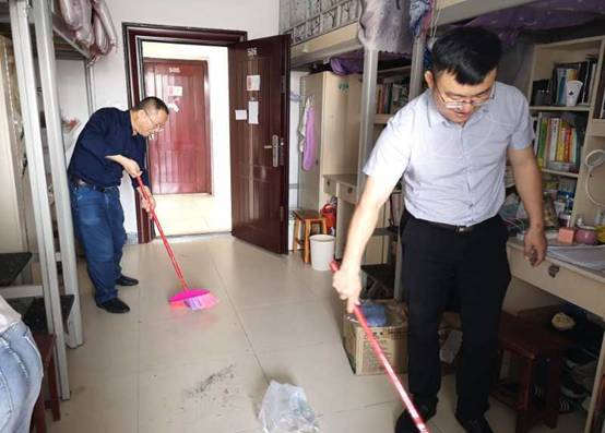 为进一步做好学生宿舍疫情防控工作,为即将返校的2020届毕业生营造安全、健康、整洁的宿舍环境,5月19日上午,学校党委委员、副校长蒋建初,人事处、科研处、信息中心和商学院全体领导、辅导员、毕业班班主任、教务秘书深入学生宿舍开展义务劳动。