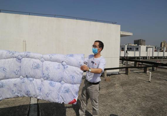 按照统一安排,三联系校领导、机关处室领导和学院领导老师分头进入学生宿舍进行被子晾晒、宿舍打扫、寝室通风等劳动。为了防止被褥出现混淆,领导和老师们先用红色布条标注学生姓名、寝室号、学生床位号,并将其系牢在被褥上,再搬到楼顶晾晒。晾晒完被褥后,领导老师们返回宿舍,认真打扫寝室。从洗漱台到阳台、窗户,从桌面到地板,几乎覆盖了宿舍的每个角落,领导老师们一一进行了细致认真的杂物清理、清扫、擦拭、整理,为学生提供了一个干净、整洁、舒适的宿舍环境。