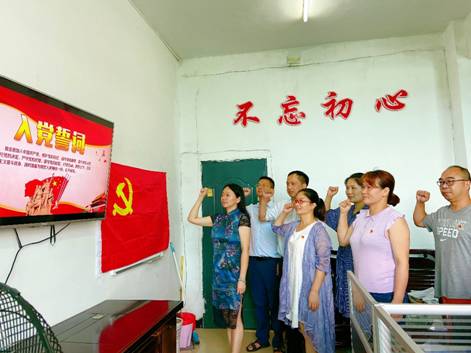 在党的七一生日之际,宣传统战部党支部在明德楼515室重温入党誓词,并开展政治学习。宣传统战部部长、党支部书记谢柳带领支部全体党员在鲜红的党旗下,庄严举起右手,握紧拳头,重温入党誓词。入党誓词的十二句话,句句千钧,让大家再次回想起令人激动的入党时刻,提醒自己牢记曾经许下的铮铮誓言。