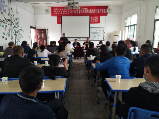 9月23日上午,娄星区2020年高素质农民教育培训“新农商带头人”班在农生院强毅楼601室正式开班。娄星区农业农村局党委书记黄明、办公室、科教股负责人,农生院副院长(农科所副所长)康林峰,班主任、辅导员老师50名农民学员参加了开班仪式。会议由康林峰主持。
