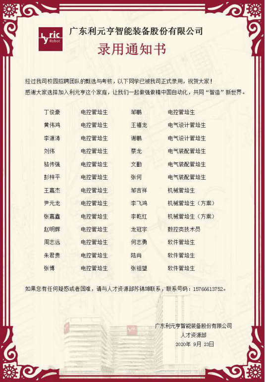 系列招聘活动后,学院共计有60余名毕业生和广东利元亨智能制造装备公司、深圳市豪恩声学股份有限公司、湖南工业设备安装有限公司等企业达成录用协议。学校创新创业学院院长彭晓华充分肯定了能机学院关心毕业生就业工作的做法,认为学院抓就业工作认识到位,举措多样,组织得力。