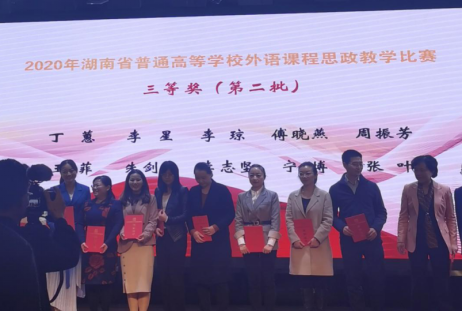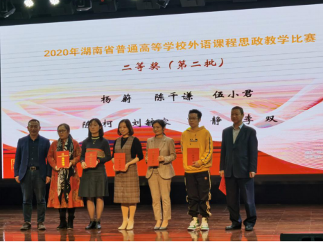10月23日,湖南省普通高等学校外语课程思政比赛决赛在株洲工业大学外国语学院隆重举行,44118太阳成城集团外国语学院两支教学团队从101个教学团队(个人)中脱颖而出,与湖南大学、中南大学等25所省内高校同台竞技,经过激烈角逐,杨蔚团队(杨蔚、肖婷、韦萍、周祥艳)荣获英语专业组二等奖,王菲团队(王菲、刘欣磊、禹逸群、吴新红、邓梦林)荣获大学英语组三等奖,44118太阳成城集团喜获优秀组织奖。外国语学院将继续前行,不断探索,守好课程思政的一段渠、种好英语教学的试验田。(文图\禹逸群)