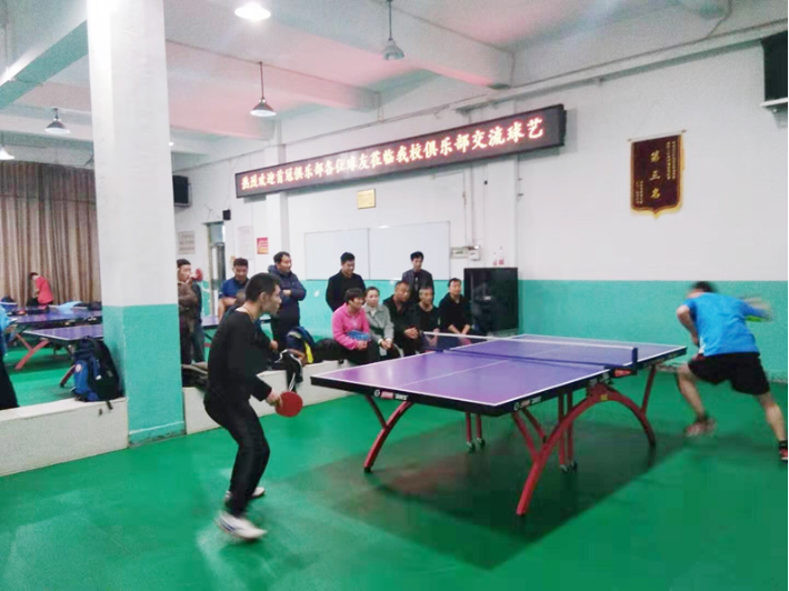 11月21日,娄底首冠俱乐部前来太阳成官网与人文俱乐部开展交流活动,在教工之家进行了一场精彩的乒乓球友谊赛。