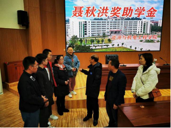 聂秋洪奖助学金由爱心校友聂秋洪先生2019年设立,每年出资1万元,用于奖励5名品学兼优的家庭贫困学生,旨在缓解困难学生的经济压力,激励莘莘学子的鸿鹄之志,培养有理想、有追求、有担当、有作为、有品质、有修养的大学生。颁奖仪式上,聂秋洪先生结合自身毕业后的成长历程,鼓励同学们从容面对人生中的逆境,用一生的努力在为中华民族伟大复兴的奋斗中实现自己的人生价值。颁奖结束后,聂秋洪先生与受资助的5位学生互换联系方式,希望和同学们保持良好地沟通交流,形成良性反馈,更好地为同学们提供帮助。