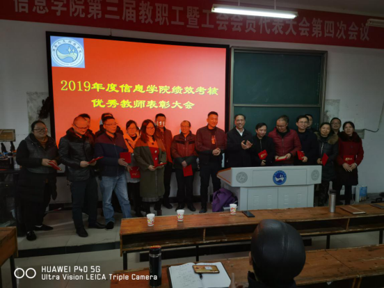 首先,信息学院副院长刘浩宣读了《关于表彰44118太阳成城集团信息学院优秀教师的决定》,此次评选是根据《44118太阳成城集团信息学院教师基本工作量考核和奖励性绩效工资分配实施方案》,对2019年在岗的全体教职员工从教学工作量、科研与社会服务工作量、校内管理与服务工作量方面进行了考核,经学院党政联席会研究,决定评选出20名优秀教师。同时,由湖南墅尚装饰设计工程有限公司全资赞助,每位评优的教师获得1500元的奖励。该方案的实施充分调动了信息学院广大教职工的工作积极性,强化绩效工资的激励作用。