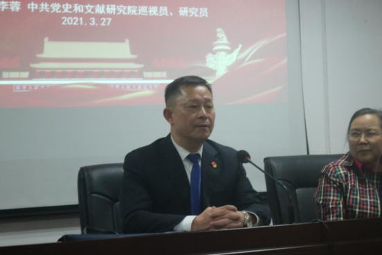3月27日,学校“人文科技大讲坛”开讲,中共党史和文献研究院巡视员、研究员李蓉教授应法学院与马克思主义学院联合邀请,在图书馆415会议室作《中国共产党百年辉煌与初心使命》学术报告。结合庆祝中国共产党成立100周年和党史学习教育活动,法学院利用讲座的形式开展了党总支二级中心组学习和支部主题党日活动。法学院二级中心组成员、各支部书记、部分教工党员、学生第一和第二党支部党员、20级法务金融班全体同学以及马克思主义学院党员参加本次学术报告。会议由法学院党总支书记尹钟宏主持。