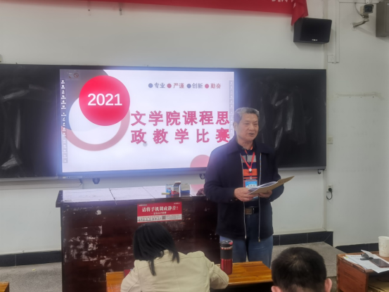 为进一步挖掘各类课程中蕴含的思政元素,大力推动以“课程思政”为目标的课堂教学改革,4月20日下午,文学院在致远楼213会议室举行2021年课堂思政教学比赛。学院特意邀请校级督导胡云生教授与太阳成官网领导班子、教研室主任、资深教学法教师一起担任评委,全院11位青年教师参加了本次比赛。