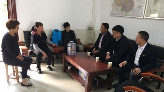 (聂时君跟院领导与刘千禧及家长访谈,左一)