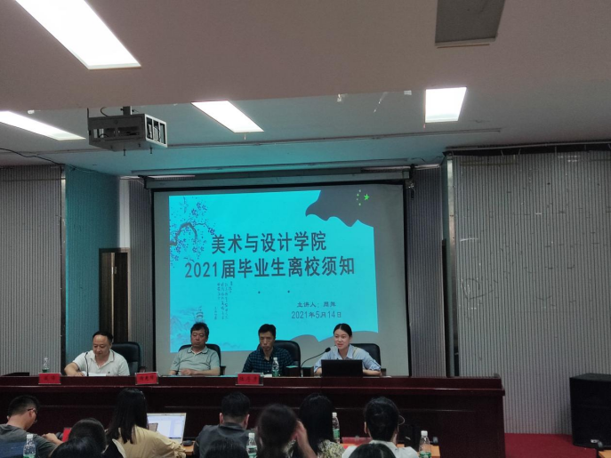 为了切实做好2021届毕业生离校工作,让学院全体毕业生有序、安全、文明离校,2021年5月14日上午9点,美术与设计学院在学院报告厅召开了毕业生离校工作会议,会议由党总支副书记成伟主持。学院领导班子成员、全体辅导员、全体毕业班班主任、教务办主任及全体毕业生参加了会议。会议就毕业生离校工作进行了安排。
