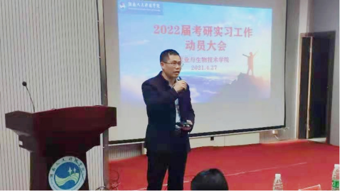 4月27日下午,农生院在逸美楼报告厅召开2018级学生考研暨毕业实习工作动员会。院长陈勇、副院长金晨钟、刘泽发及相关人员参加。会议由刘泽发主持。