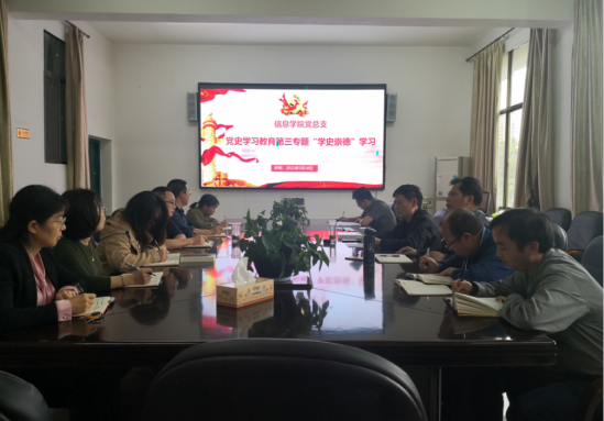 5月18日,信息学院党总支在百全楼211组织“学史崇德”专题中心组集中学习,党总支委员、院领导、党支部书记参加。学习由党总支书记谭甲凡主持。