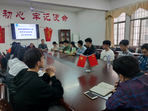 5月19日下午,数学与金融学院2021届考研学生座谈会在学而楼203室召开。出席本次座谈会的有学院党总支书记陈国华、院长李军成、各专业负责人以及2021届考研成功的20位学生,会议由副院长罗志军主持。