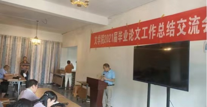 苍翠的大石山下,静谧的凤凰山庄。6月20日下午,文学院2021年毕业论文工作总结交流会在这里隆重召开。