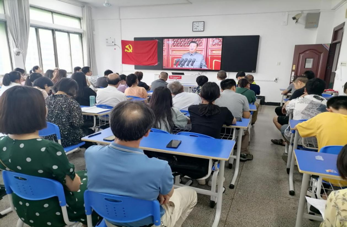 7月1日,庆祝中国共产党成立100周年大会在北京天安门广场隆重举行,马克思主义学院全体师生党员在致远楼603共聚一堂集中收看庆祝大会实况直播。