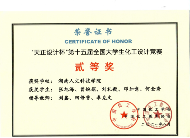 本届竞赛以“为某大型化工企业设计一座异丙醇生产分厂或为现有的异丙醇生产分厂设计技术改造方案”为设计题目,自3月启动以来,全国共有401所高校2767支队伍报名参赛,规模达历史之最。材环院组建了5支队伍报名参赛,参赛师生在近6个月的时间内,查阅文献数据,进行数据拟合、流程模拟、设备设计与选型、图纸绘制等,成功提交了参赛作品。通过竞赛,同学们在实践能力、创新意识、合作精神和责任心方面都得到很大的提高。