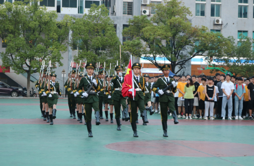 早上7时,在全体师生的注目礼下,国旗护卫队踏着整齐划一的步伐护送国旗走向旗台。伴随着国歌雄壮的旋律,五星红旗冉冉升起,在晨曦中迎风飘扬。