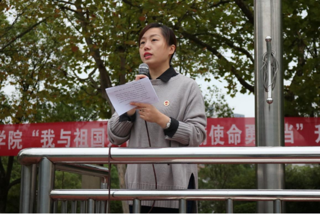 2021级新生代表毛澜琳发表了国旗下的演讲。她号召同学们以实现中华民族伟大复兴为己任,不负时代,不负韶华,不负党和人民的殷切期望,担当时代重任,彰显青春本色。