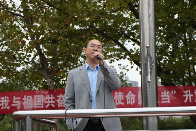 党总支书记陈国华寄语全体学子,希望大家在追梦的路上充分发扬爱国精神,把握青春勤奋斗,砥砺使命勇担当。并叮嘱全体学生要严格遵守疫情防控属地管理规定,继续坚持“非必要不出省、不出娄”原则,共建平安校园。