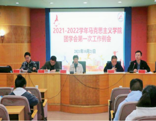10月21日晚,马克思主义学院在养根楼报告厅召开2021-2022学年团学会第一次工作例会。院党总支书记李伶、院长张卫明、院党总支副书记周友、辅导员张得才出席会议,全体团学会成员以及优秀学生代表参加,会议由团总支临时负责人周浩主持。