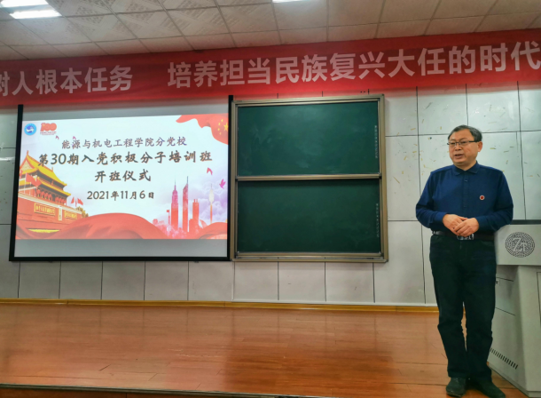 为深入学习贯彻习近平新时代中国特色社会主义思想,提高入党积极分子思想觉悟和理论素养,切实做好入党积极分子培养教育工作,11月6日,能源与机电工程学院分党校在同德楼601举办第30期入党积极分子培训班开班仪式暨第一次党课培训。来自能机院与教育学院的150余名入党积极分子参加了本期培训。学院党总支书记谢常清主持开班仪式并讲授第一课。
