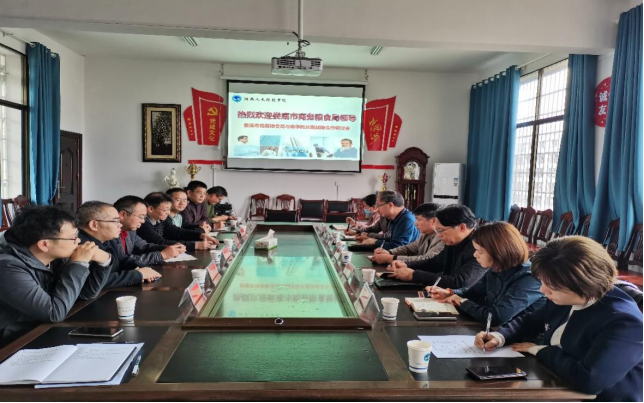 近日,娄底市商务粮食局副局长刘飞跃一行7人来校,与商学院就长期战略合作进行交流研讨。商学院院长刘辛田、党总支书记刘辉及部分博士代表参加座谈。
