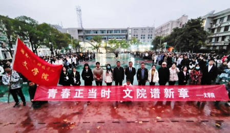 11月22日晨,文学院组织2019级、2020级、2021级全体学生在宇光球场举行了升旗仪式,主题为“青春正当时,文院谱新章”。学生工作处处长李玲军、副处长谢四元以及文学院党总支书记尹钟宏、院长倪正芳、副书记毛永宁、副院长罗主宾和全体班主任、辅导员参加了仪式,文学院学生会主席郑绍琨主持。