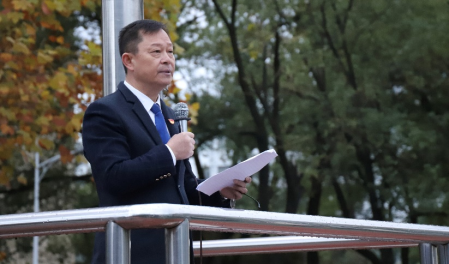 尹钟宏指出,本次升旗仪式是一次特殊的迎新大会。他强调,2021年,是一个全新的年份:这一年,中国遇到百年未有之大变局,正在前所未有的走近世界舞台的中央;这一年,中国开始继续深化改革并平视世界,党的十九届六中全会召开;这一年,教育新发展理念带来新境界;这一年,文学院也迎来焕新出彩新气象,在学生管理、就业工作、学风建设、学科竞赛等方面取得了一系列工作成绩。他从学习、思考、锻炼、理想等方面送给学生十句话,希望同学们“风正扬帆,催鞭奋蹄,时不我待,开辟新的人生!”