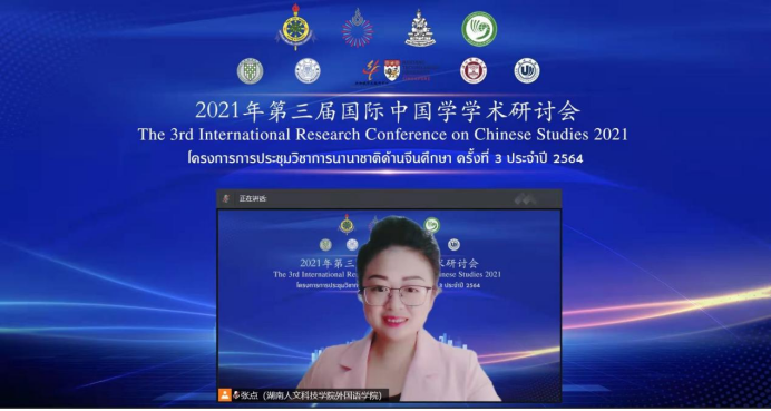 11月19日,太阳成官网外国语学院张点副教授应邀出席在泰国召开的第三届国际中国学学术研讨会,线上主持了“中国语言与文化”议题分会场,并以“The Dilemma Thinking of the Construction of Foreign Discourse System in Traditional Chinese Culture”(中国传统文化对外话语体系构建困境思考)为题做主旨发言。