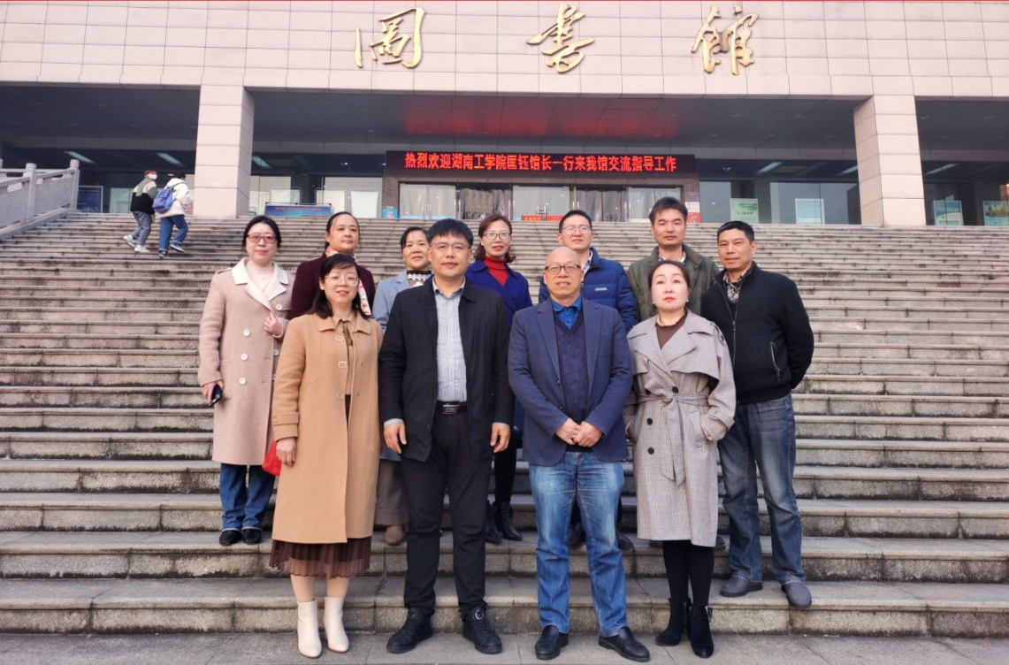 12月8日-9日,湖南工学院图书馆馆长匡钰、副馆长郑红京、技术部主任杨冬、信息咨询部主任周海红一行4人来我馆参观交流,图书馆馆长彭辉、副馆长申彦舒和部门主任参加了交流会。