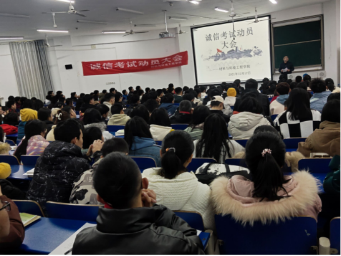 为加强学院学风建设,严肃考风考纪,进一步做好学生安全教育,12月17日,材料与环境工程学院在致远楼119教室举行诚信考试动员大会。副院长胡继林、副书记陈佩君出席,2021级全体学生、2020级、2019级学生代表参加会议。