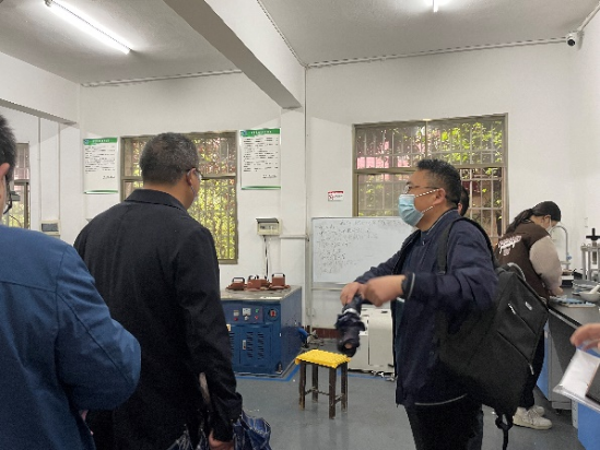 检查组一行在实验室现场查看实验仪器的使用情况,检查了实验仪器使用登记本、实验教学工作日志、日常化学品管理台账等日常管理工作,并对其它涉及到仪器使用过程的安全问题进行了详细的询问。叮嘱实验室要加强管理,老师和学生们在使用过程必须严格按照规程进行使用和操作。文瑾介绍了学院实验室日常管理工作、实验室安全检查与隐患整改等。