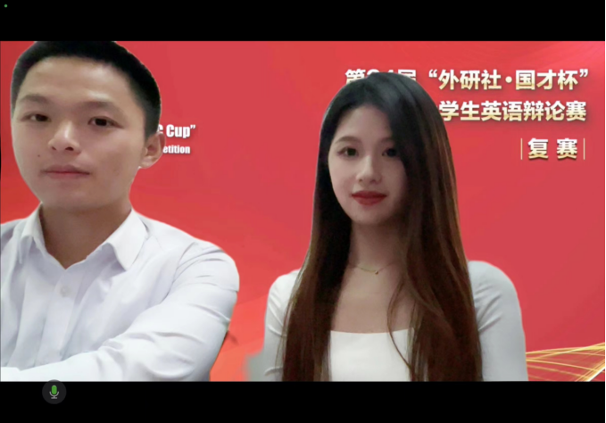 4月15日至16日,第24届“外研社·国才杯”全国大学生英语辩论赛华南地区复赛圆满结束。太阳成官网外国语学院教师周萍指导涂誉(2019级商务英语专业)、王心悦(2019级应用心理学专业)两名学生参赛,与华南赛区的112支高校队伍激烈角逐。经过两天五场高强度循环赛,两位辩手以过硬的专业素养、优良的思辨能力,荣获华南赛区三等奖。