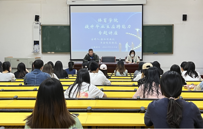 为了提升体育学院毕业生师范技能水平,增强应聘能力,促进毕业生就业。5月4日晚,体育学院在博达楼115举办提升毕业生应聘能力的专题讲座。讲座由就业专干闵婷主持,具有丰富教育教学经验、带队实习经验、教资面试考官经验的唐红明教授、王金稳副教授主讲,近50名在校毕业生参加讲座。