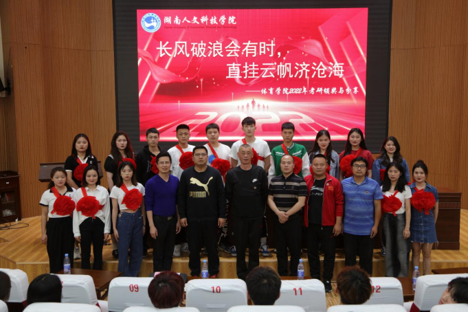 5月17日下午,为树考研新风,进一步做好考研工作,体育学院在匠成楼报告厅举行“长风破浪会有时,直挂云帆济沧海”2022届毕业生考研表彰大会。院长刘玉江、副院长周惠新、党总支副书记谢嘉及专业负责人陈勤、董植寿、周阳出席活动。2022届考研录取学生,2019级、2020级、2021级部分学生代表参会。会议由体育学院副院长周惠新主持。